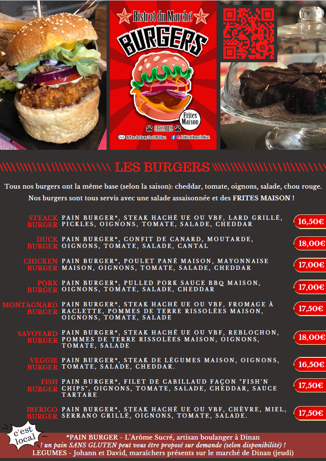 Tous les Burgers sont disponibles version pain sans Gluten (Sauf si rupture)